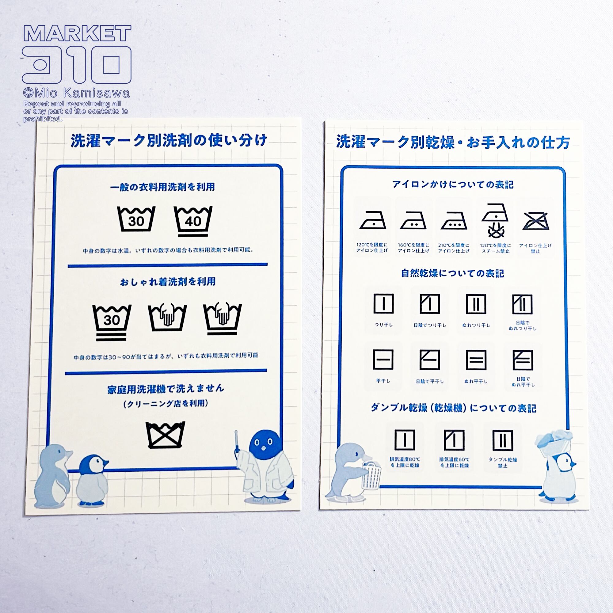 ・洗濯マーク見分けカード2種(ハガキサイズ : 洗剤 / アイロン / 乾燥の見分け方)