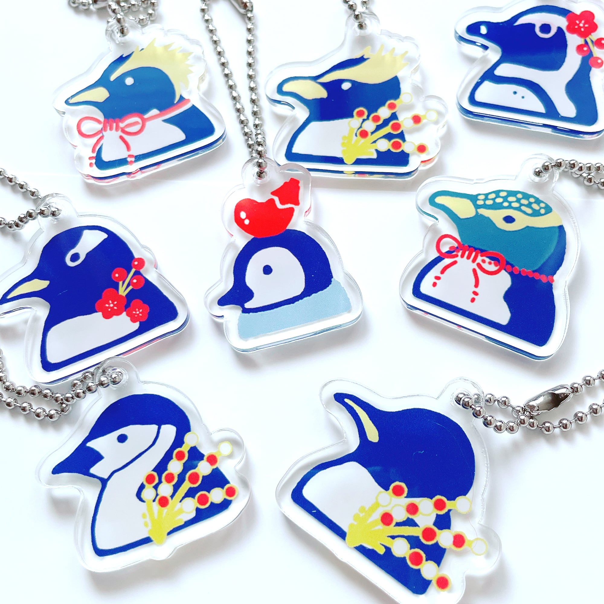 新年バージョンのアイコンペンギンのイラストを今回アクリルキーホルダーにしました。