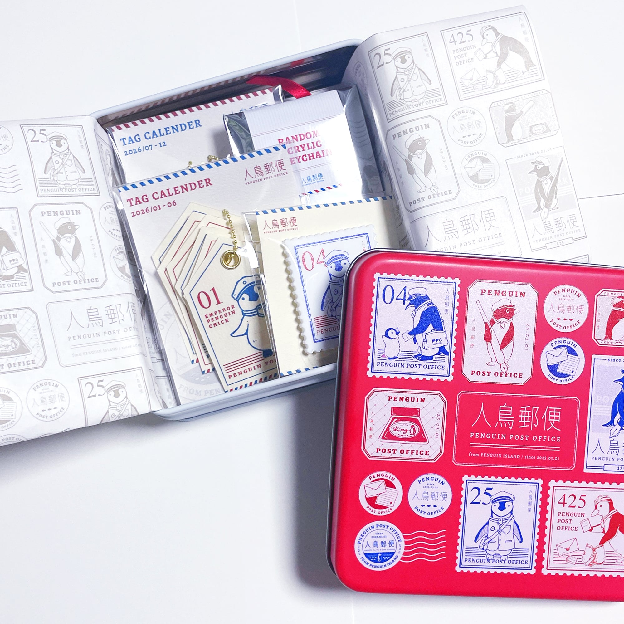 カレンダーやランダムアクキーなどのグッズが中に7点入った紅白缶。缶は紅と白のバイカラーデザインになっています。
