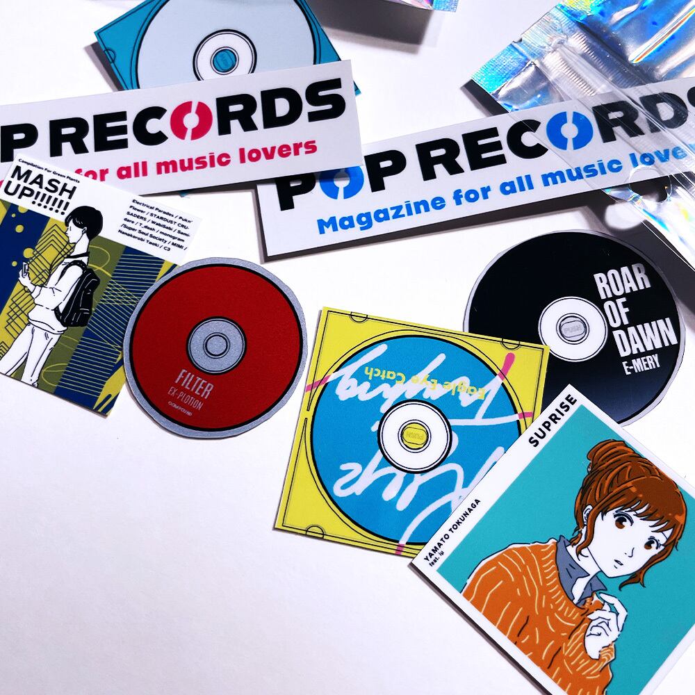 イラスト集POP RECORDSで収録されてたCDデザインやジャケットイラスト、ロゴなどのステッカー4種をセットにしたものです。
